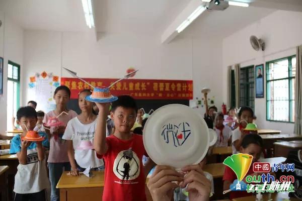 小孩们手持自己的手工艺品和“微尘·心”队徽。中国青年网通讯员 黄晓妮 摄