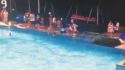 ▲发现有小孩溺水,郭迁思忙跪地施救(视频截图)