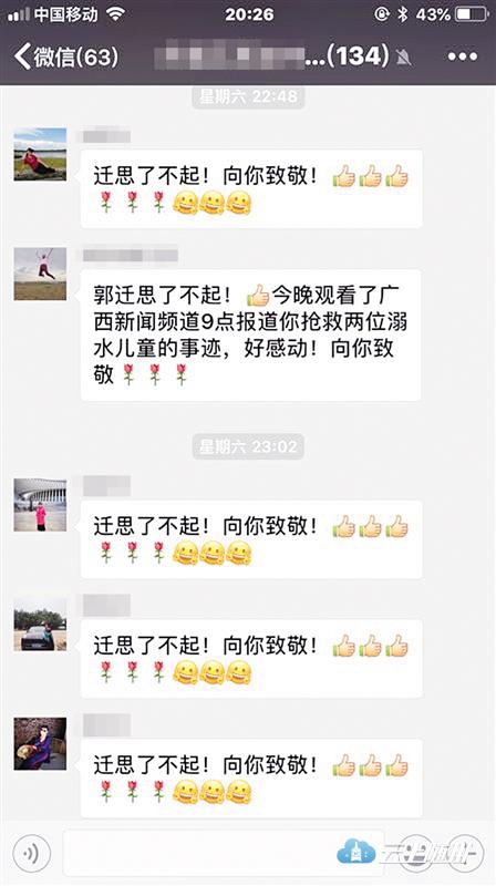 对郭迁思的救人之举,大伙纷纷点赞(网络截图)