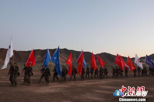 7月18日至24日,第二届甘肃省学生军事训练营活动在酒泉卫星发射中心举行。图为学生在戈壁滩进行12公里野营拉练。