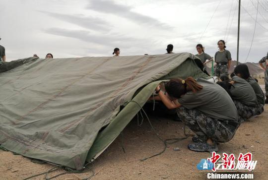 除了蚊虫叮咬,最难忘的莫过于训练了。有一次,清晨4点,在戈壁滩进行12公里野营拉练,途中还进行“通过染毒地段”“防空袭”和“传递口令”等战术训练。“当时,我以为我坚持不住了,但是‘战友’没有放弃我,她扶着我的胳膊,我们一起奔向终点,让我很感动。”米芳娟说。