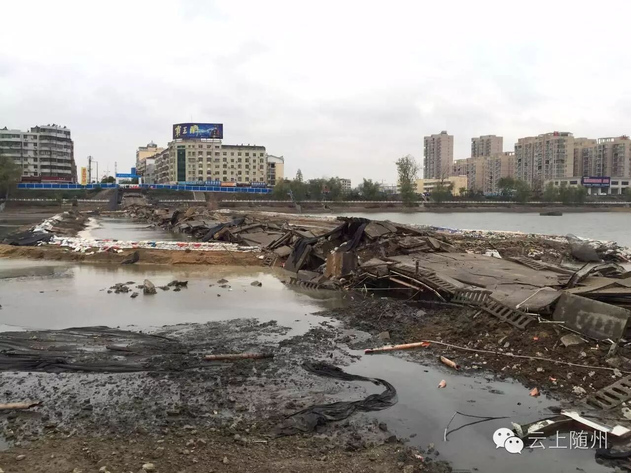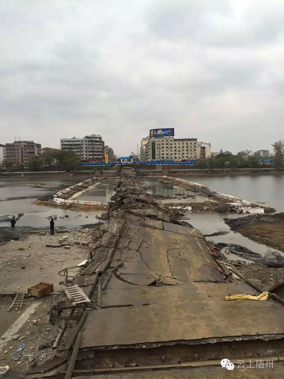 为保障市民出行安全,有效缓解日益增长的城市交通压力,随州市政府决定对㵐水一桥予以拆除。自2016年7月5日起,㵐水一桥开始封闭,拆除新建工作正式启动。经过5个月的拆除准备,㵐水一桥在爆破指挥长——随州市委常委、常务副市长蒋星华的指挥下,于2016年11月22日15点28分爆破成功。