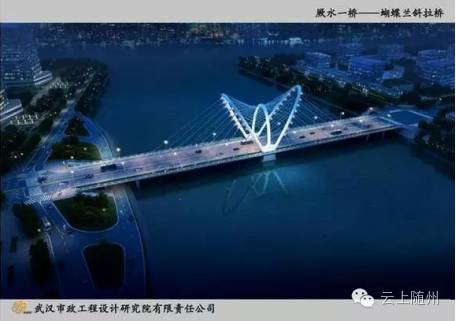 为了缓解城区日益增长的交通需求,规划改造将㵐水一桥的整个桥梁拆除重建,预计规划桥梁总段面32米宽,主车道是双向六车道,两侧各修一条3米绿化带和2.5米人行道,桥梁全长258米,新建一座双向6车道的蝴蝶兰斜拉索桥梁。相信建成后的大桥将成为随州城市桥梁的“颜值担当”。