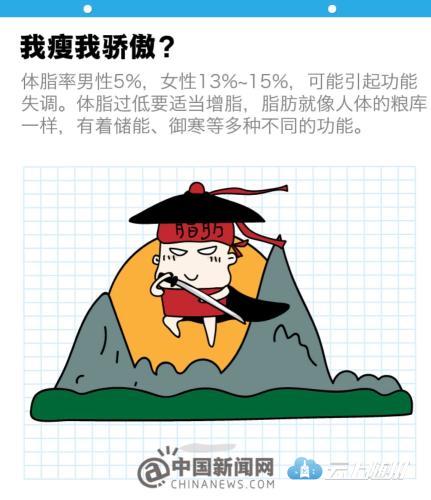 换而言之,虽然肥胖的滋味并不好受,但是一味的追求过低“体脂率”同样并不是一种健康的健身方法。赵之心在接受中新网记者采访时表示,脂肪的功能是相当重要的。而很多人追求的“八块腹肌”有时可能并不健康,脂肪就像人体的粮库一样,有着储能、御寒等多种不同的功能。