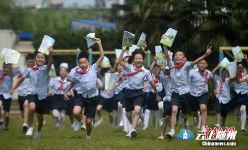 资料图:学生们展示刚刚领到的新学期课本。 孟德龙 摄