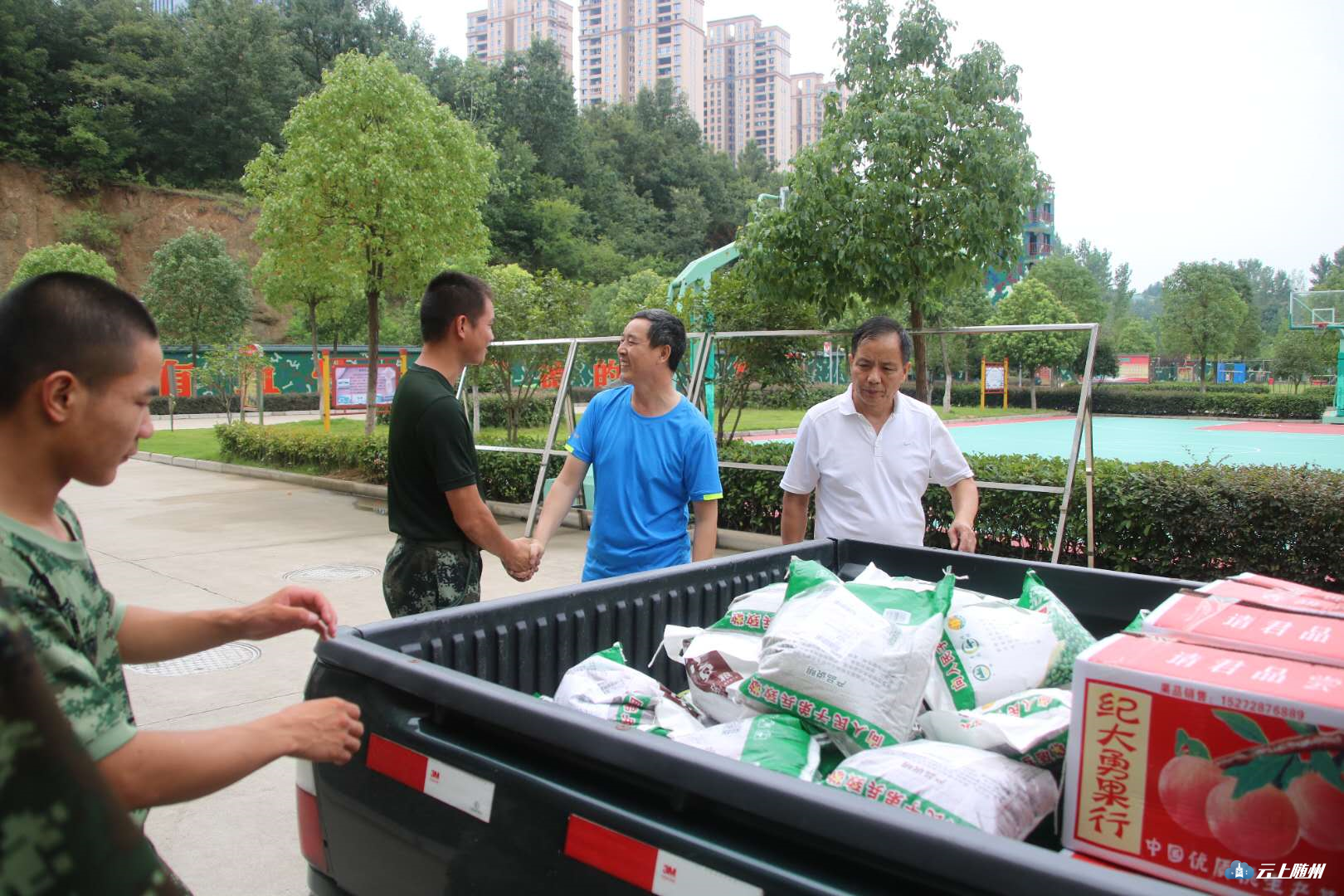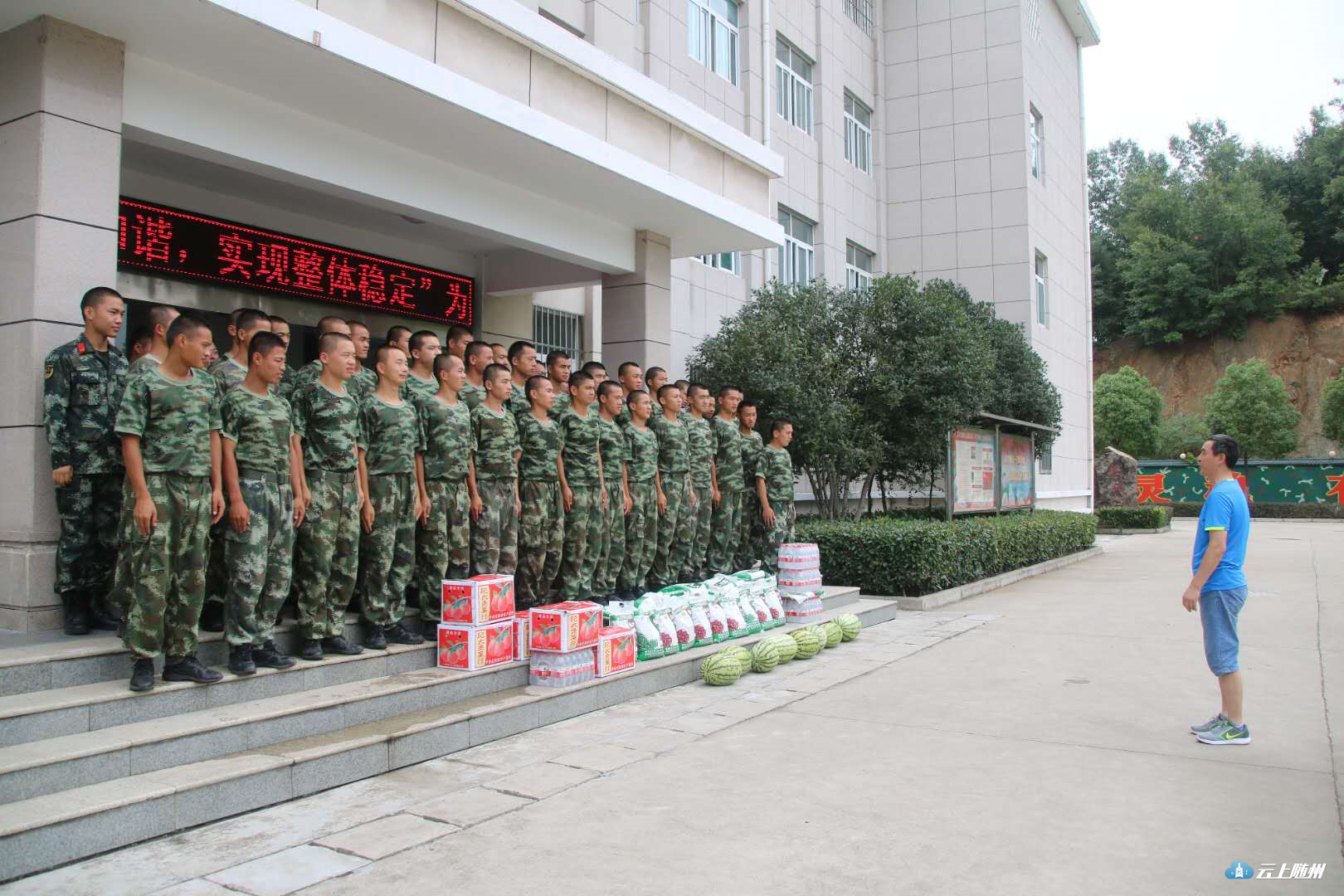 今天上午九时许,营区热闹非凡,前来慰问的人一拨接一拨。他们带来了矿泉水、西瓜、葡萄等解暑食品,以及大米、粮油、猪肉等生活物资,以此庆祝子弟兵的节日,由衷地感谢他们为保卫驻地人民所做出的贡献。