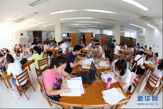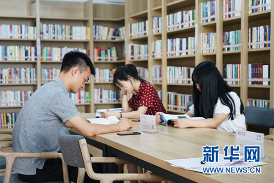 7月19日,市民在安徽省淮北市图书馆里阅读学习。近日连续高温,安徽省淮北市图书馆借阅室内清凉安静,饮水免费供应,市民可以一边遨游书海,一边上网冲浪,成为高温天气下人们纳凉学习的好去处。