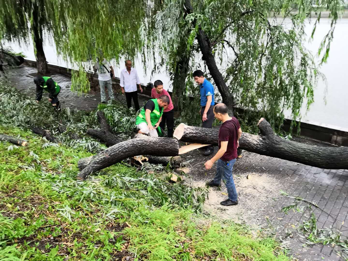 据绿化管理处相关负责人介绍,近日为暴雨多发天气,城区沿河大道、东大堤、烈山大道段,均出现了部分苗木倾倒和断枝的情况,给市民出行带来不便,并存有一定的安全隐患。一系列抢险工作均以保证市民安全为前提,对于单纯倾倒的苗木进行抢救性重栽,踩实培土,避免发生二次伤害;对于断枝的进行锯断劈枝,以避免断枝垂落;对于完全无抢救价值的苗木,将树枝分段拖走,并清理干净地面的枝叶,恢复路面交通。