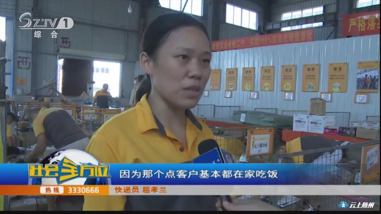 【同期声】 快递员 屈孝兰:“那时候可能有点热,因为到处派送,派送件时间比较久,中午最热的时候,我们到处派送,因为那个点客户基本都在家吃饭。”