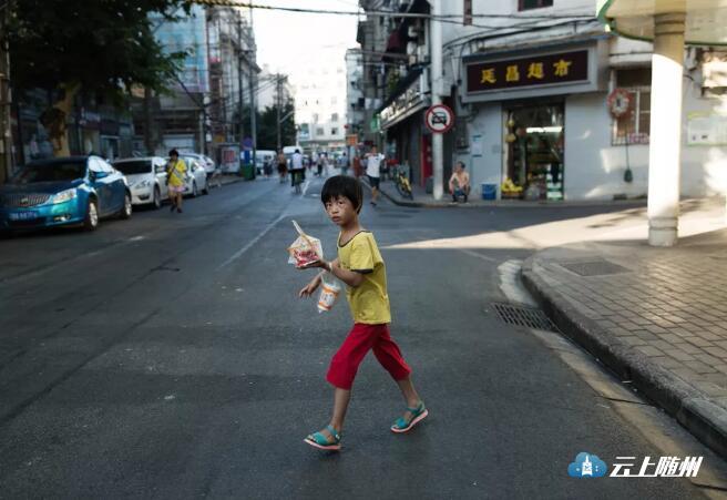 汉口南京路,提着热干面豆浆赶着回家吃的孩子