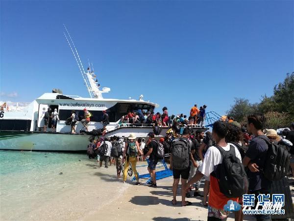 8月6日,游客在印度尼西亚龙目岛附近的特拉旺安岛海滩上等待登船撤离。 新华社发(梁芳芳摄)