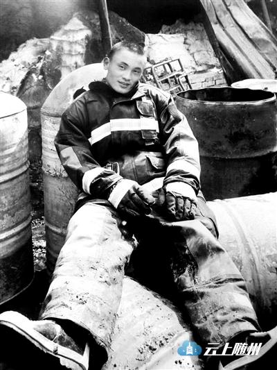 张利鹏此前参与救援后在现场休息