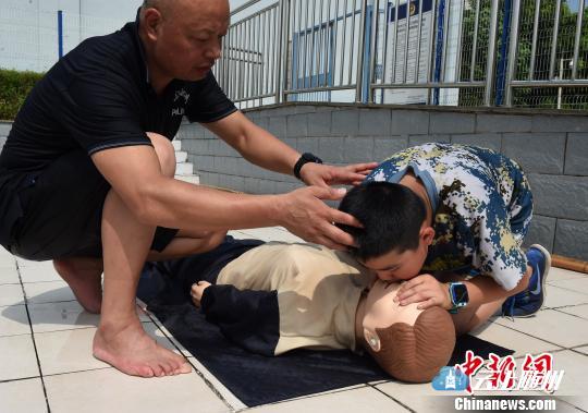 资料图:学生在指导下学习体验溺水后紧急救护方面的知识。 周毅 摄
