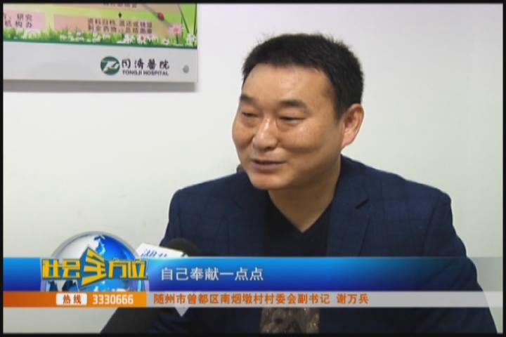 <采访人>随州市曾都区南烟墩村村委会副书记 谢万兵:无偿献血,自己奉献一点点 ,是不是给社会给别人,特别是需要的人一个帮助,帮助别人自己也肯定快乐的 。