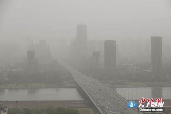 资料图:山西太原被沙尘笼罩,空气质量达到严重污染级别,户外能见度低。武俊杰 摄