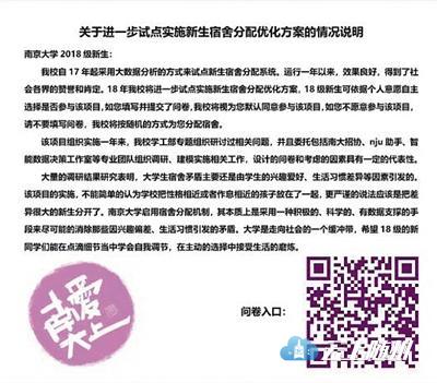 问卷的设定是一个长期过程,记者了解到,近几年南大有专门团队在持续跟踪回访,对大二、大三经历过宿舍生活的学生进行长期的信息搜集,日常管理中也会记录学生的反馈。