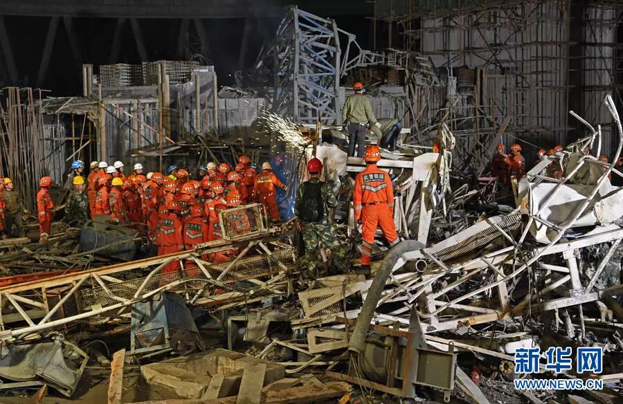 “当时上下施工平台用的电梯,一起坍塌了。除了地面层的工友,在上面的人全部坠落,被钢筋等材料压在下面。”王摇胜说。