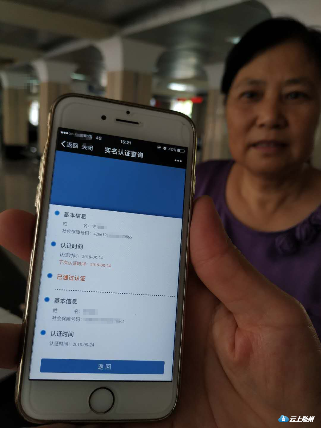 “动动嘴巴,眨眨眼睛……”,8月24日下午,在市社保局大厅,工作人员在帮助一名办事群众拍视频,大家正在疑惑,怎么这么像拍抖音?还没等大家弄明白,工作人员惊喜的说:“成功了,您是我们随州市第一位通过手机进行资格认证的退休企业职工。”大家这才明白,原来是随州市白云湖综合开发有限责任公司退休职工许女士,在随州市社保局和人社信息中心工作人员的帮助下,通过智能手机微信公众号完成了养老待遇资格领取认证。这是我市首例通过智能手机终端完成养老待遇领取资格认证的城镇企业退休职工。