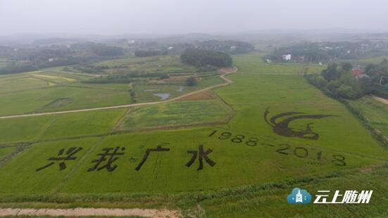 8月23日,走进广水市关庙镇梅庙村,高家畈近200亩的彩色稻田令人眼前一亮:由彩稻绘成的“1988—2018”“兴我广水”字样和广水市标火凤,组成一幅巨画,新颖而意趣盎然。