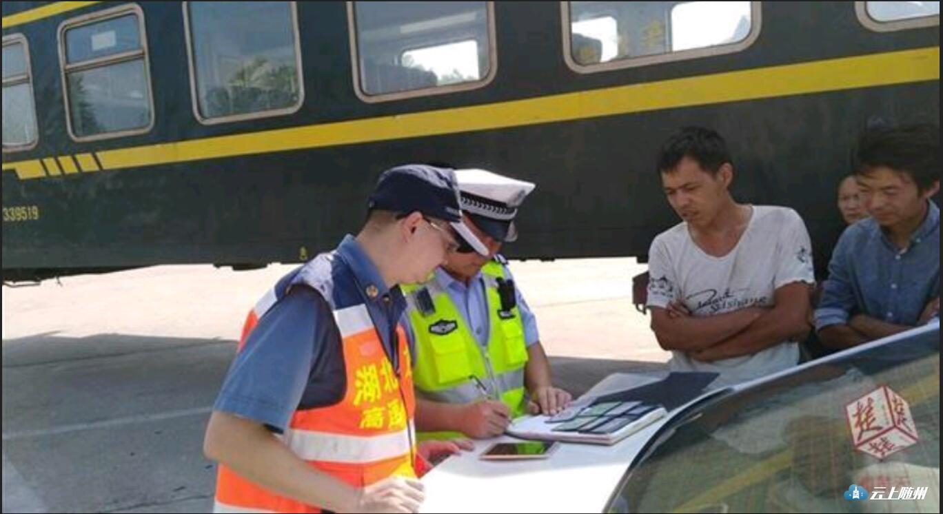 7时30分,湖北路政人员和高速交警巡查至福银高速银福向K1130+200M时,一辆仅有两节车厢的“火车”在高速公路应急车道上“停靠”,他们急忙上前了解情况,这才发现是两节真的火车车厢,由两辆六轴半挂车拖运,车头加车身足有34.7米,两节车厢尾部均悬挂在运输半挂车的车身外,超出部分有7.7米长。