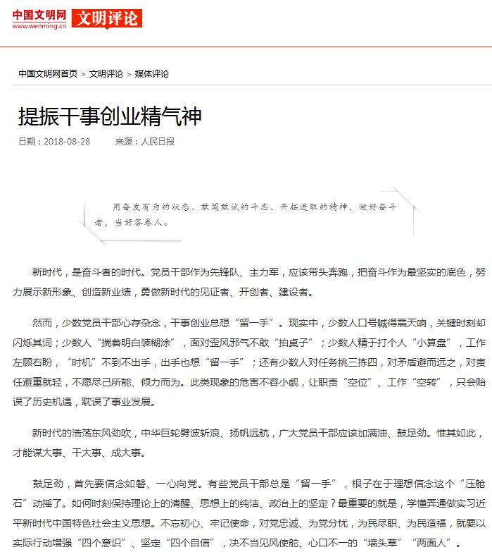 文章一经刊登,人民网、党建网、中国文明网等各大主流媒体和政府网站纷纷转载。