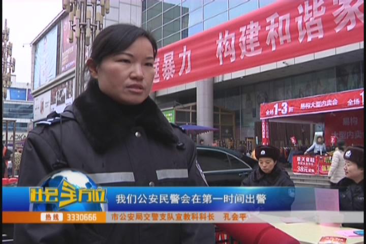 市妇联在银泰新世纪购物中心门前悬挂了横幅,设置了咨询台,并向过往市民发放反家暴宣传单、宣传册,为他们普及反家暴知识,解读《反家暴法》。市公安局交警支队宣教科科长孔会平介绍,过去,多数人认为家庭暴力只是家务事,受害者往往因为“家丑不可外扬”的思想/束缚而忍气吞声。如今有法可依,对家暴行为也做出了明确界定。