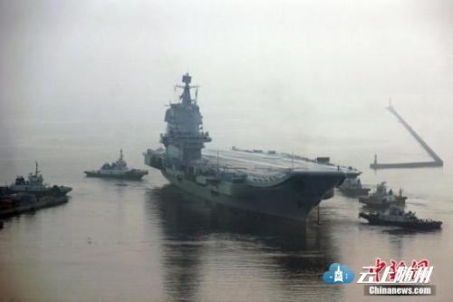 资料图:国产航母离开大连造船厂码头,开赴海上试验。 中新社记者 杨毅 摄