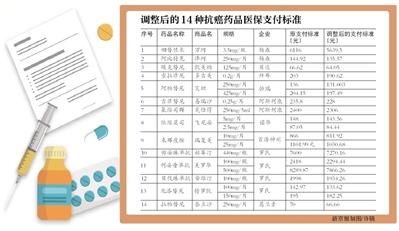 昨日记者从北京市人社局获悉,该局日前下发通知,要求相关药品企业和医保定点医疗机构做好前期国家谈判抗癌药品医保支付标准调整工作。记者获悉,此次北京市按照国家要求调整了14种抗癌药的医保支付标准,企业申请调价的时间全部要在9月份完成。