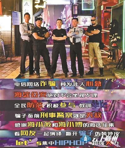 9月的第一天,海淀警方通过多个平台推送了一部不到5分钟的宣传片。宣传片以警察参与说唱的形式展现,被网友称作“骗子看了腿软的警察说唱大会”。