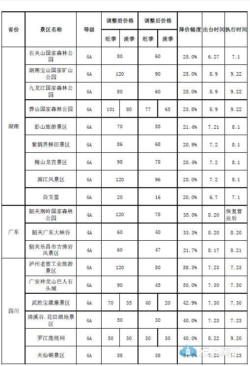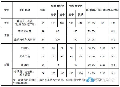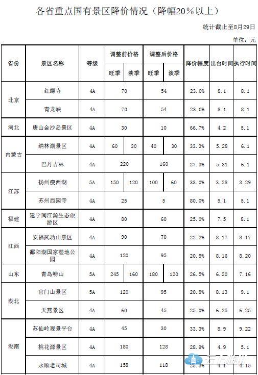 各省重点国有景区降价情况。来自国家发改委