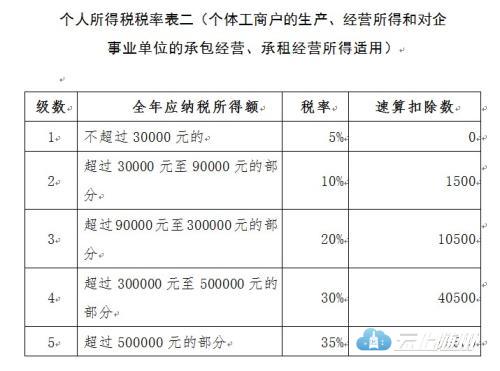 个人所得税税率表二(个体工商户的生产、经营所得和对企事业单位的承包经营、承租经营所得适用)
