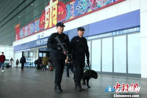 资料图:2018年春节期间,杭州铁路公安处特警队员在杭州东站巡逻。杭州铁路公安处 供图