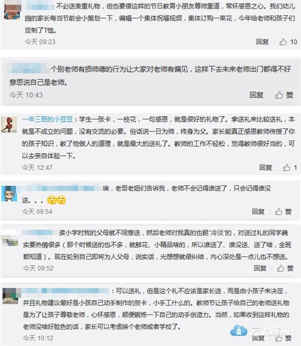 随着第34个教师节的临近,教师节是否要送礼引发广泛的讨论。