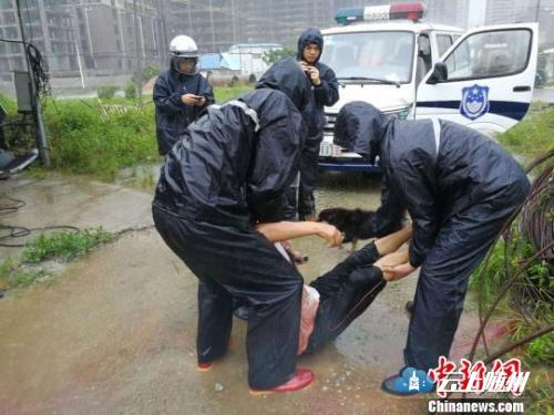 在佛山高明荷城街道,工作人员正抢修电力设备。 张攀 摄