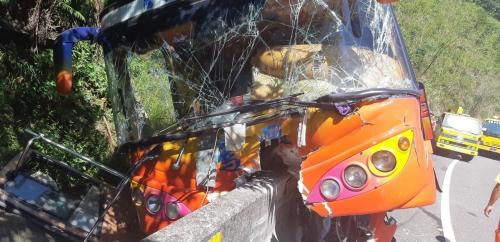 据台湾“中央社”报道,1辆游览车17日上午9时许行经台62快速道路前往基隆的大浦道,撞上山壁,包含司机在内,共有29人受伤送医,目前已知1名男性乘客大腿骨折较为严重,29人现已被分别送医治疗。 车祸现场。台湾《联合报》记者赖郁薇摄影
