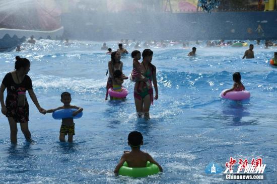 不少小孩在家长的带领下在水中纳凉。陈超 摄