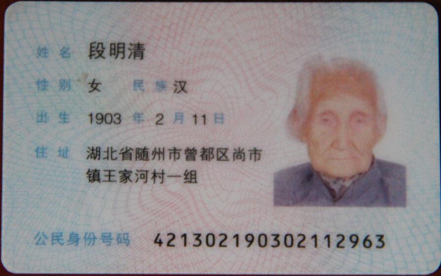 段明清老人的身份证