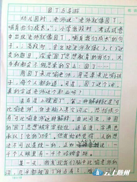 @金中水又良的小迷妹:90后阿姨表示,看了你的作文,我会好好反思自己的写作水平的!
