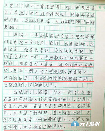 这名小学生希望自己的老师能像一名导游