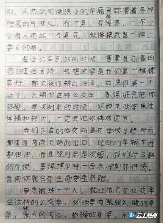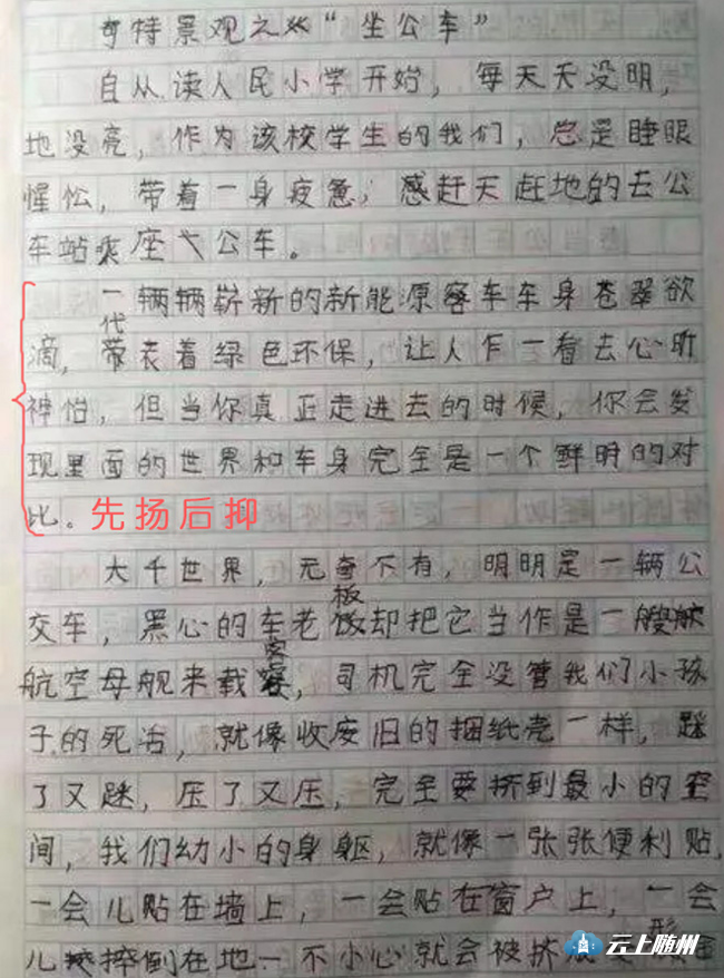 四川泸州市合江县一名小学生吐槽公交车拥挤的作文火了