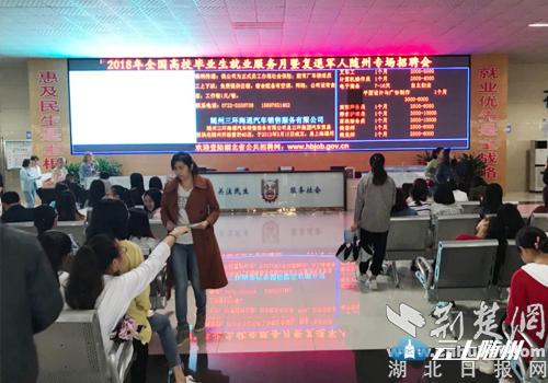 为切实做好高校毕业生和复退军人等重点群体的就业服务工作,搭建精准就业、精准帮扶人力资源服务平台,促进离校未就业高校毕业生和复员、退伍军人尽快实现就业。9月26日上午,由随州市人社局、随州市民政局主办,随州市就业部门承办的“2018年全国高校毕业生就业服务月暨复退军人随州专场招聘会”在随州市就业局公共服务大厅内举行。