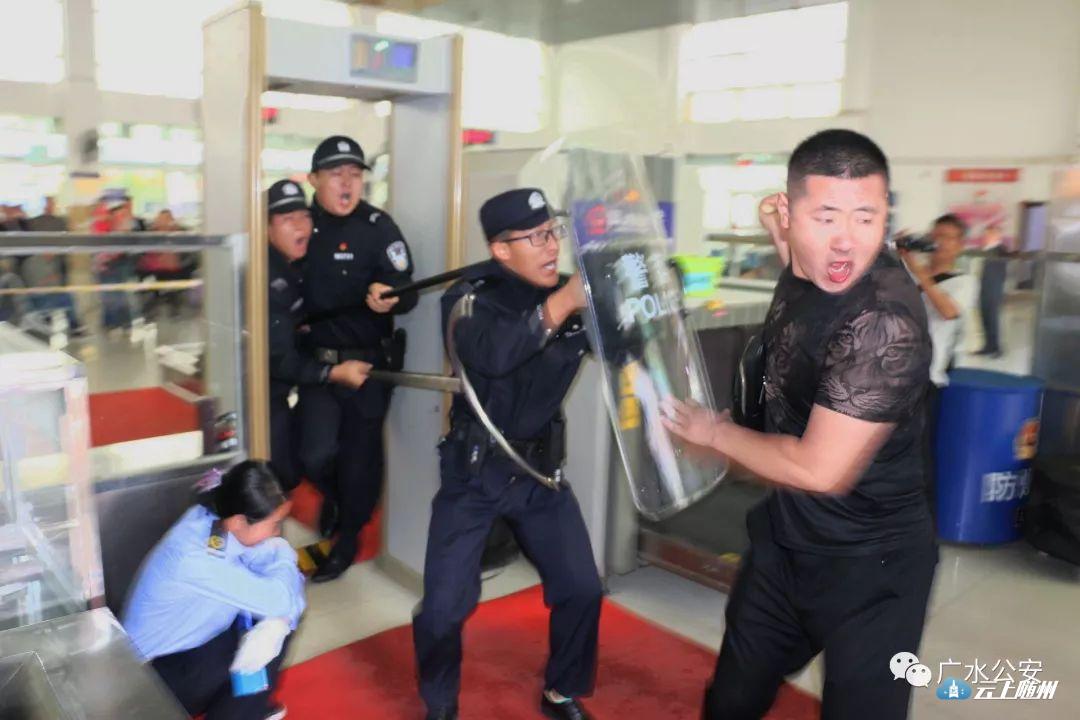 这就是广水市公安局为提高地铁公安机关对突发暴恐警情的处置能力,确保火车站旅客人身财产安全,组织巡逻、治安、交警及开发区分局民警,与广水火车站派出所、开发区武胜关镇卫生院一道,在广水火车站成功举行的一场联合反恐演练。