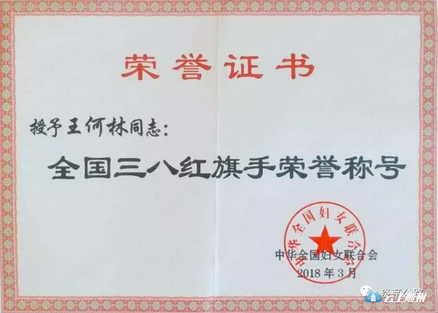 王何林荣获全国三八红旗手荣誉称号