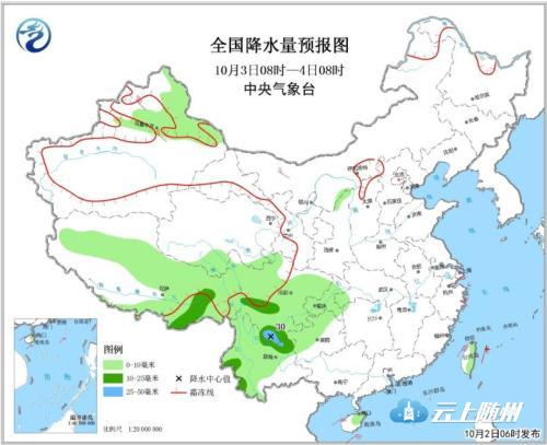 图1 全国降水量预报图(10月2日08时-3日08时)