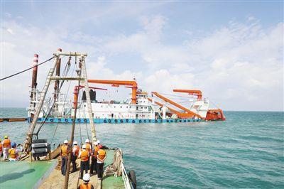 据陈文锋介绍,一期项目的疏浚工程量不低于1000万立方米,预计吹填造陆面积为100万平方米,“相当于在海面上填了140个足球场,将海岸线前移了4公里”。如此浩大的疏浚吹填工程在柬埔寨还从未有过。为了确保工程质量,“顶峰浚”号绞吸船组和4000米的吹填浮管都是从中国大连直接运至贡布港口。和船组一起来的,还有30多名经验丰富的船员。