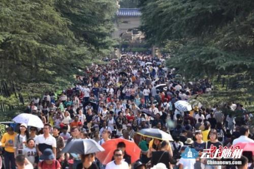 10月2日,大批游客涌进南京中山陵参观。中新社记者 泱波 摄