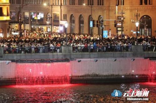 10月1日晚,上海外滩人潮如织。中新社记者 张亨伟 摄