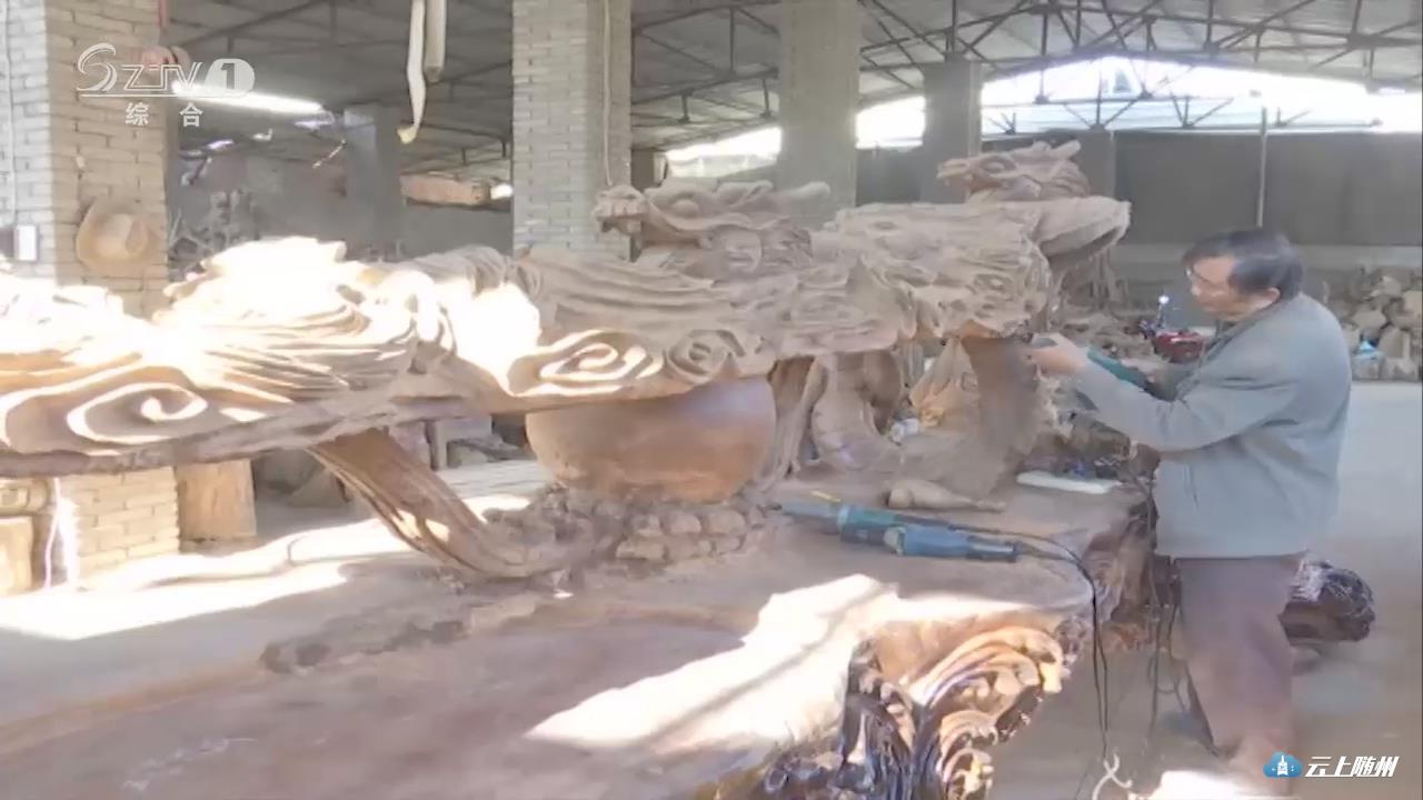 【采访】根雕文化产业园 薛国旺:这也是目前结合我们洪山坪村的旅游 做的一个有品位的 有意义的一个山庄 第二 能带动旅游 发展大洪山的经济 所有游客来了以后 在欣赏我们根雕的同时 也能体验大洪山的旅游这一块