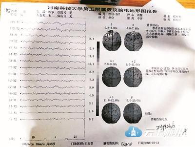 刘刚:刚入院的时候做过一个检查,显示“未见异常”,之后8月19日的检查又说“脑地形图异常”。