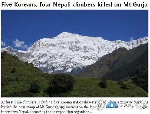 ▲图为尼泊尔媒体对此次遇难事件的报道截图。韩联社/《喜马拉雅时报》官网截图